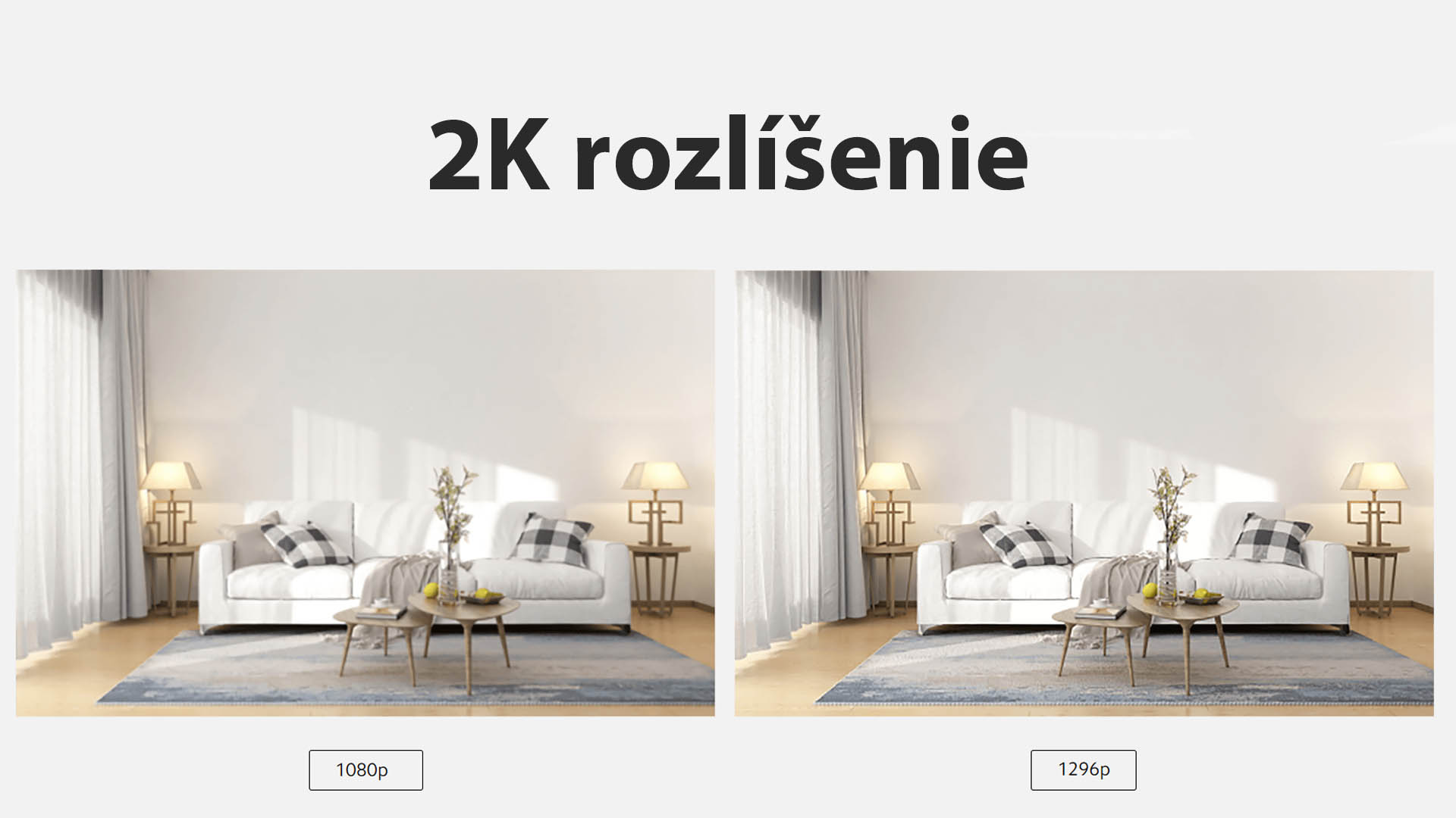 Vďaka vysokému 2K rozlíšeniu (2304 × 1296) dokáže kamera zachytávať ostrejšie snímky. V aplikácii si taktiež môžete obraz detailne približovať. Objektív kamery dokáže snímať až v 125° uhle.