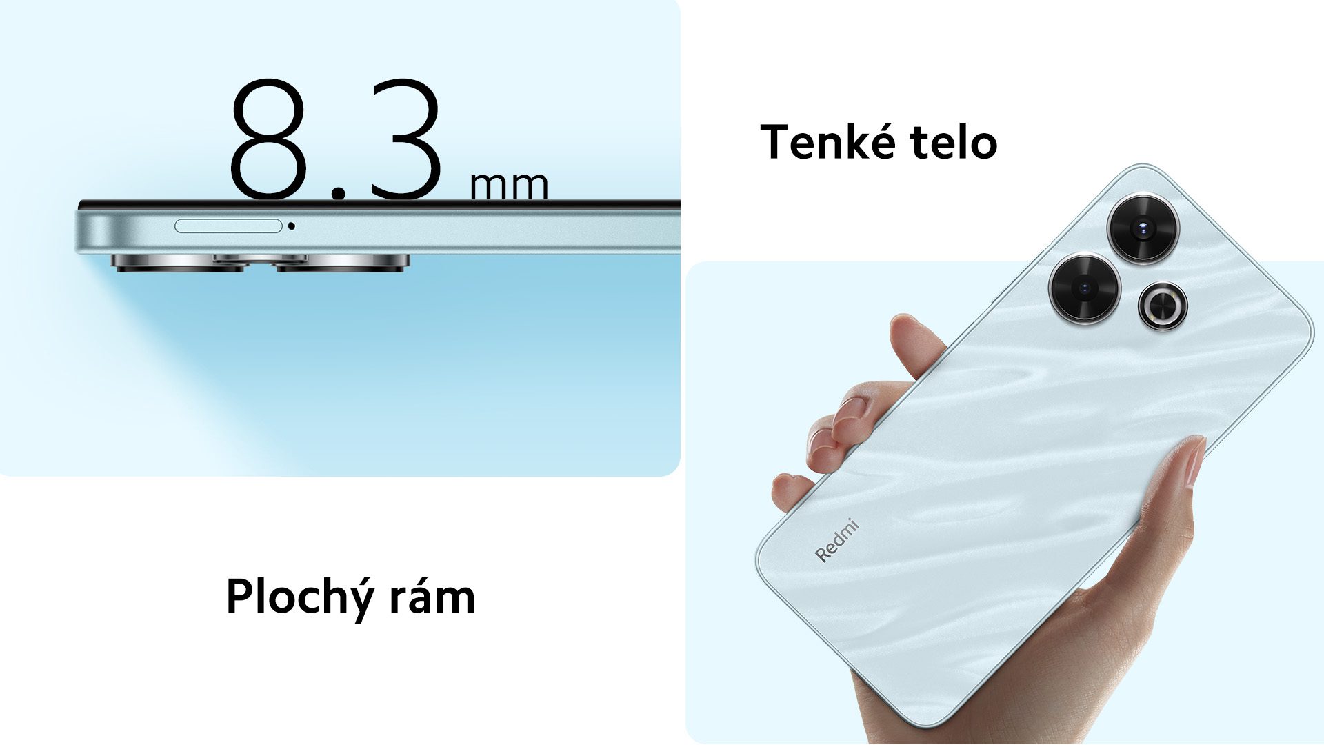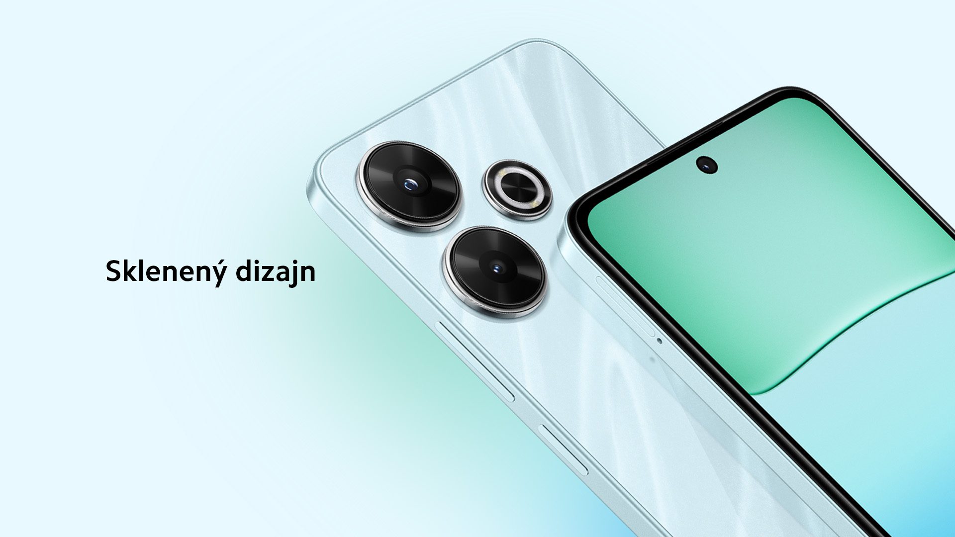 Telefón Redmi 13 sa môže pochváliť elegantným a prémiovým skleneným dizajnom zadnej strany, ktorý nielen že zlepšuje jeho vzhľad, ale poskytuje aj lepší pocit z držania telefónu.