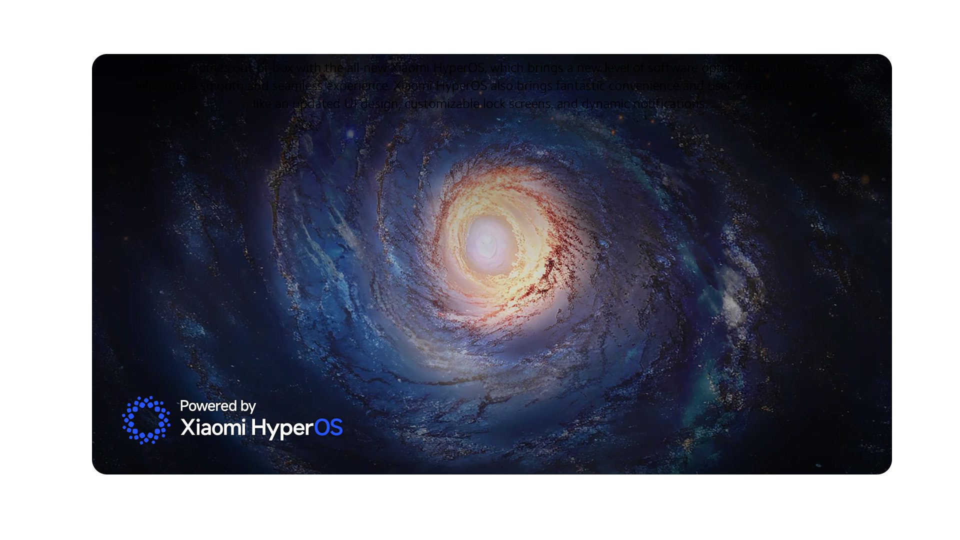 Redmi 13 je vybavený úplne novým operačným systémom Xiaomi HyperOS, ktorý používateľom prináša novú úroveň optimalizácie softvéru a poskytuje plynulé a bezproblémové používanie. Xiaomi HyperOS tiež prináša fantastické pohodlie a užívateľsky prívetivé funkcie, ako je aktualizovaný dizajn používateľského rozhrania, prispôsobiteľnú zamknutú obrazovku a dynamické notifikácie.