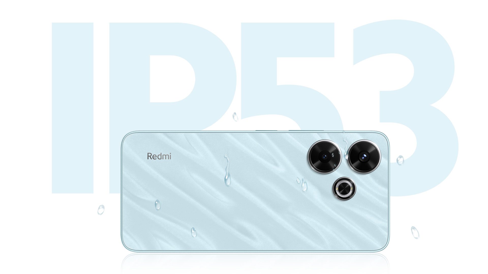 Redmi 13 sa môže pochváliť vylepšenou konštrukciou, tvrdeným sklom Corning® Gorilla® Glass a odolnosťou voči prachu a striekajúcej vode IP53.