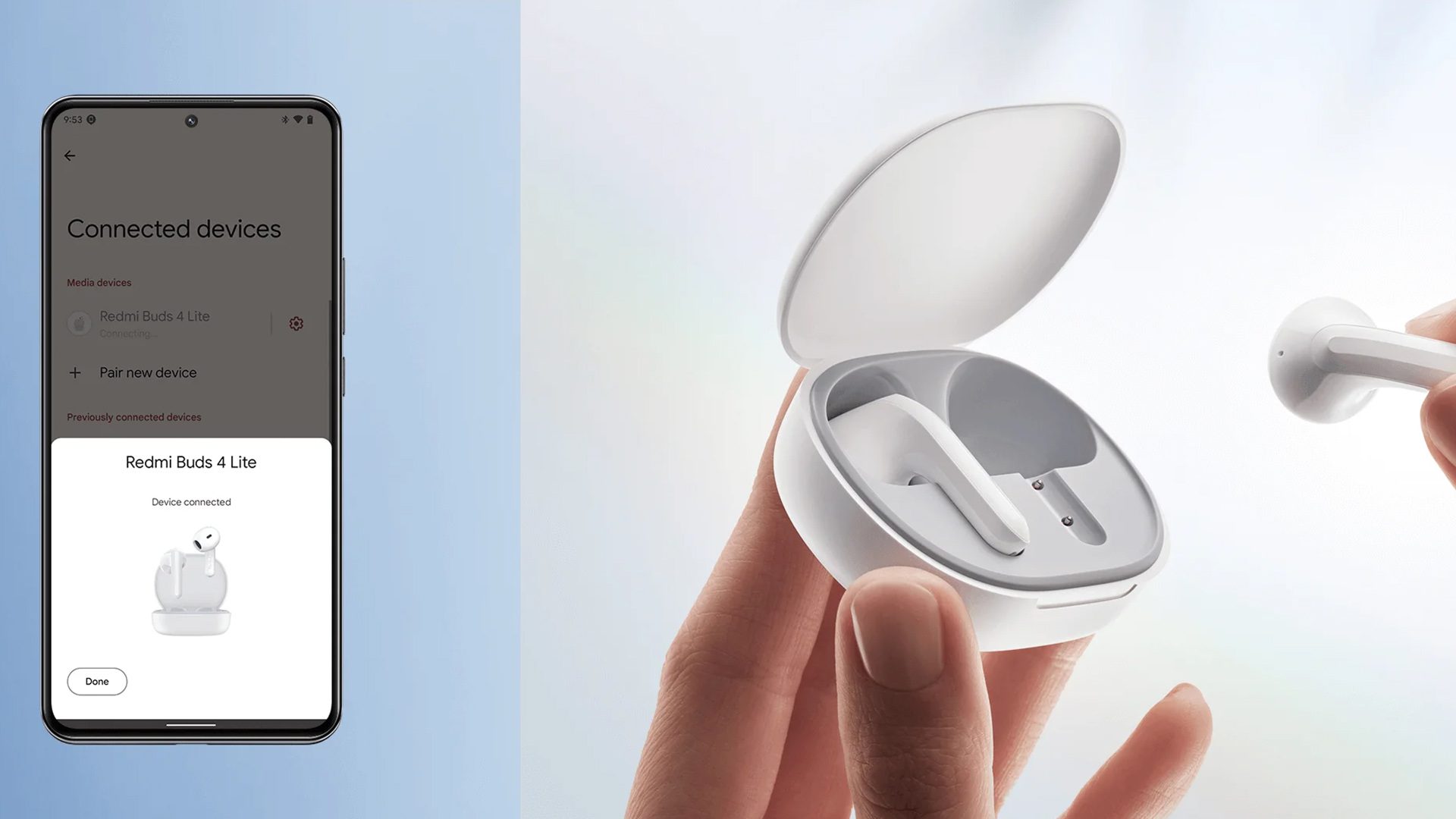 Redmi Buds 4 Lite umožňujú rýchle a bezproblémové spárovanie s telefónmi Android. Stačí otvoriť kryt a môžete sa pripojiť. Môžete dokonca skontrolovať, kam ste naposledy umiestnili slúchadlá. Taktiež si môžete skontrolovať stav batérie slúchadiel a nabíjacieho puzdra.