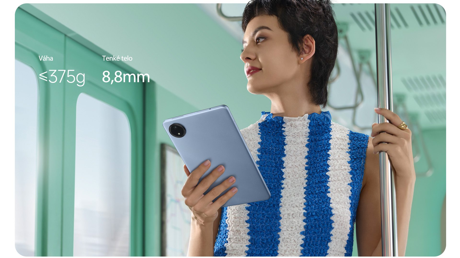 Redmi Pad SE 8.7 má elegantné a štýlové plastové telo, je tenký len 8,8 mm a váži len 373 gramov, vďaka čomu je ľahko prenosný. Je k dispozícii v troch mladistvých farbách: Graphite Gray, Aurora Green a Sky Blue.  Na zvýšenie ochrany a štýlu máme v ponuke eshopu aj príslušenstvo – puzdro.