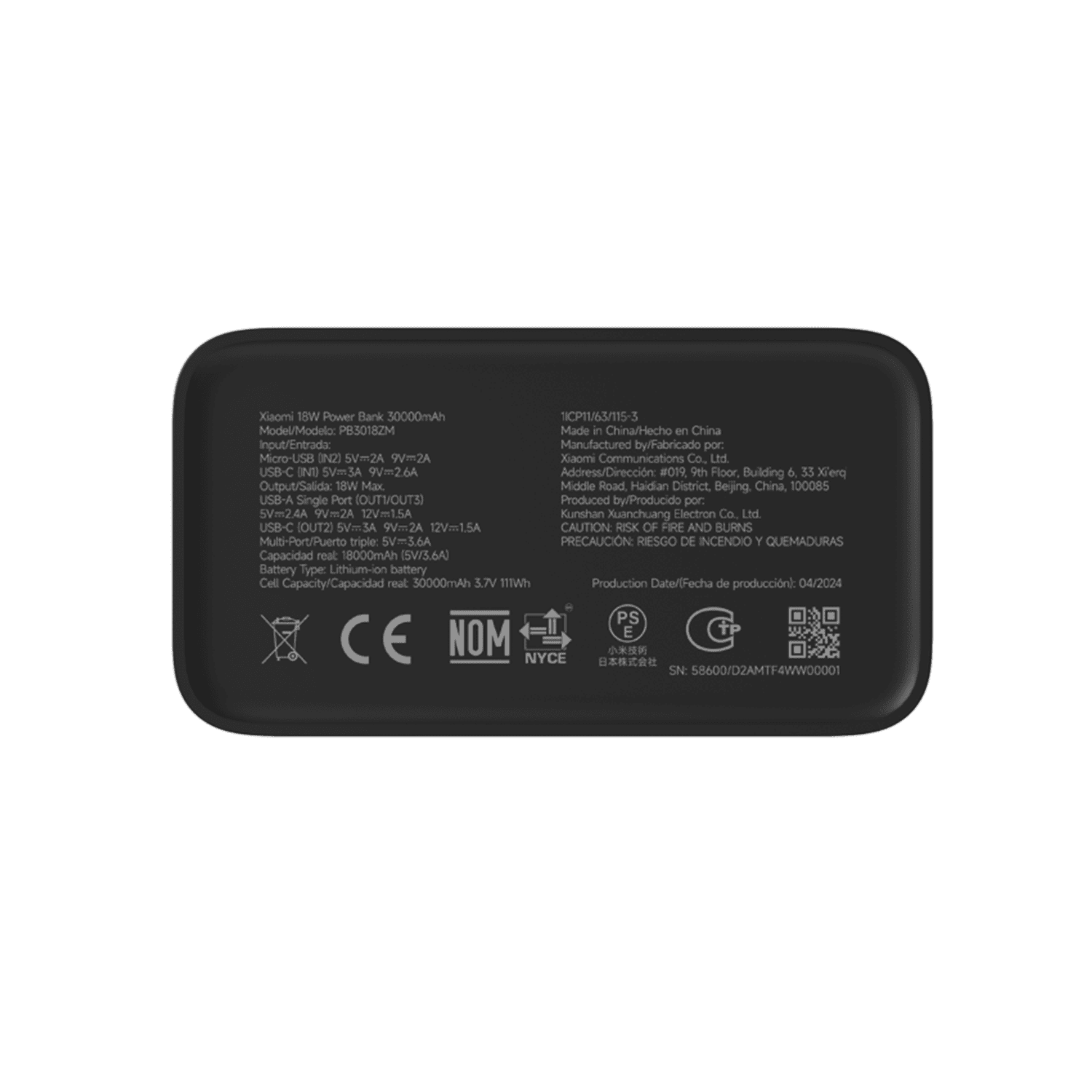 Obsah balenia: Xiaomi 18W Power Bank 30000mAh x1, Nabíjací kábel USB-C x1, Používateľská príručka x1