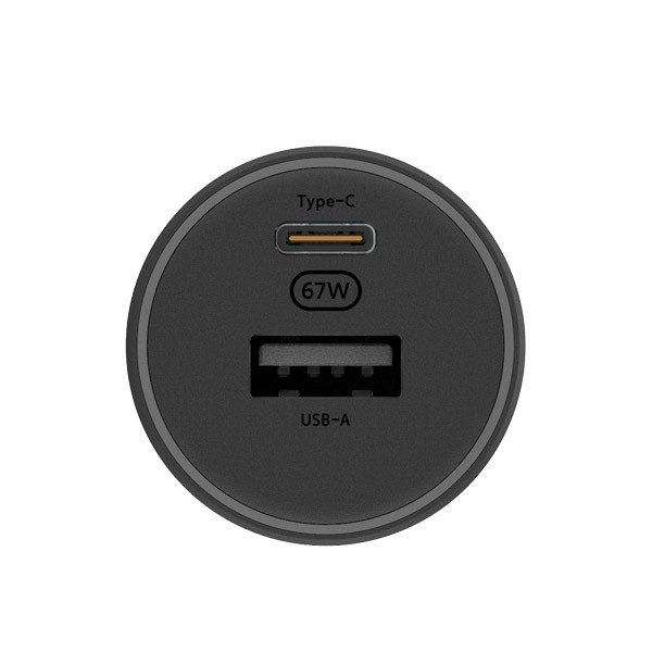 Vysoko výkonná 67W nabíjačka do auta. Podporuje rýchle nabíjanie až dvoch zariadení. Je kompatibilná so širokou škálou zariadení. Nabíjačka má v hornej časti svetelný kruh, ktorý mení farbu podľa výstupného výkonu.