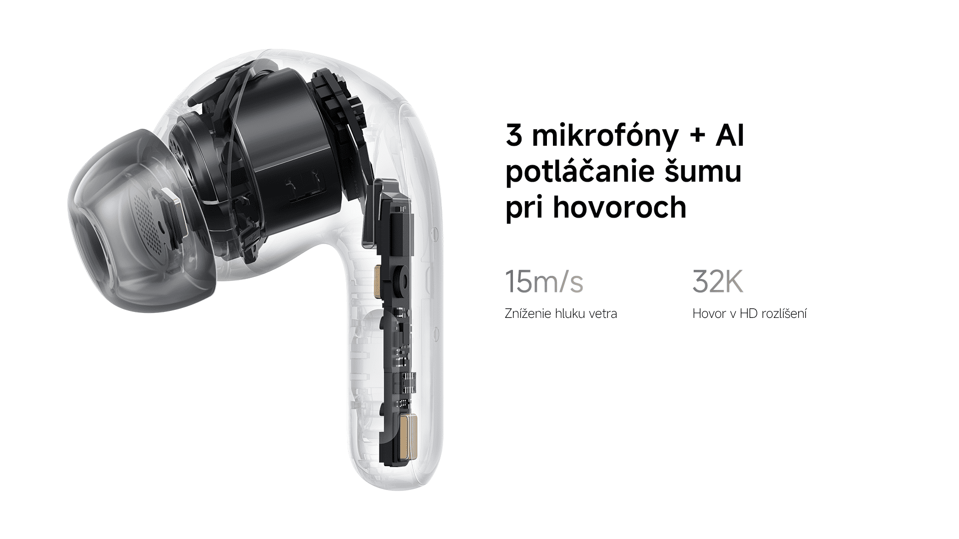 Trojica mikrofónov a algoritmus umelej inteligencie sa postarajú o redukciu okolitého šumu a potlačenie rušivých zvukov, pre ničím nerušenú a zreteľnú komunikáciu aj v hlučnom prostredí. Komfort zvýši aj potlačenie hluku vetra až do 15m/s, pre čisté hovory aj v exteriéry.