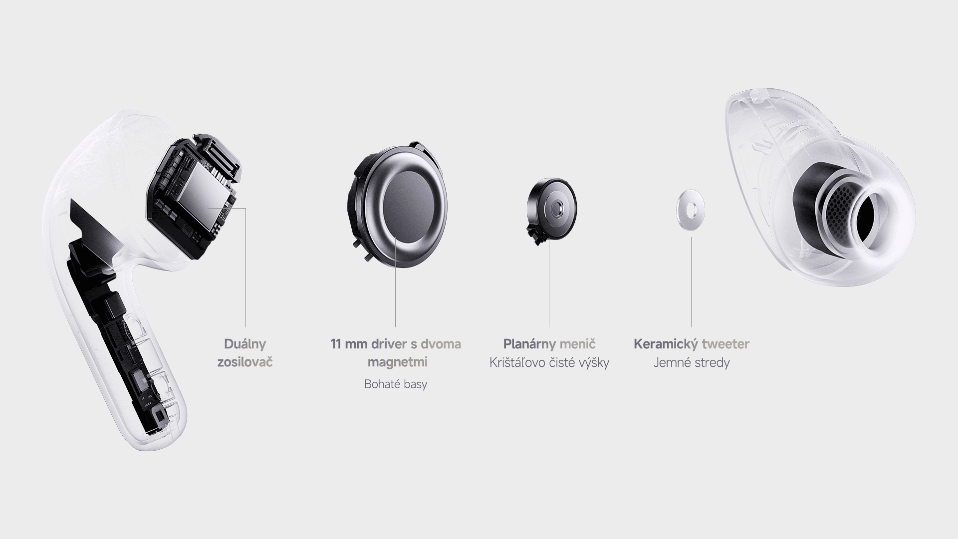 Xiaomi Buds 5 Pro, sú vôbec prvé slúchadlá značky, využívajúce naše duálne zosilňovače, ktoré ovládajú nízke a vysoké frekvencie nezávisle od seba, čím účinne minimalizujú vzájomne rušenie vysokofrekvenčných a nízkofrekvenčných signálov a zvyšujú tak množstvo detailov a čistotu zvuku.