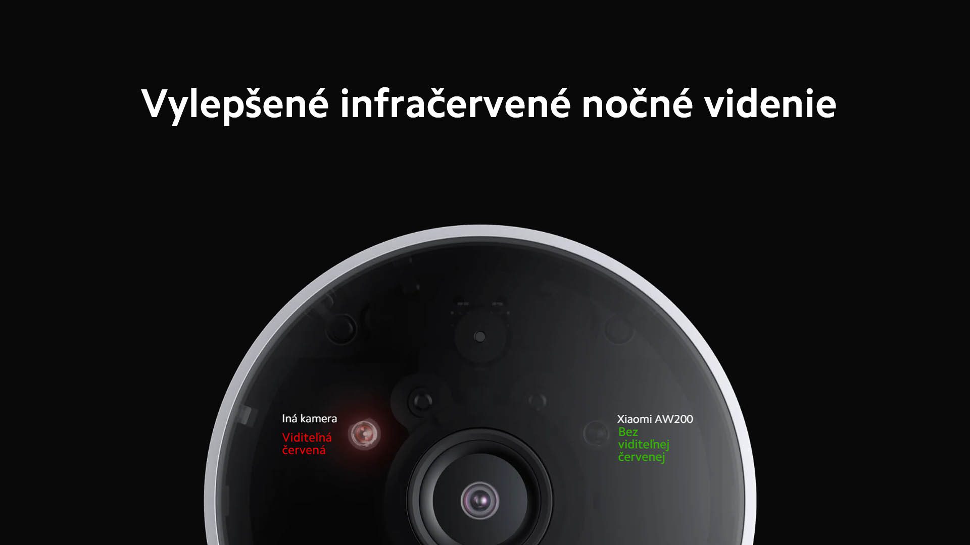 Vylepšené infračervené nočné videnie vám umožní vidieť jasný a čistý obraz aj v úplnej tme. Skvelé nočné videnie zabezpečujú zabudované 940 nm LED diódy. Výhodu Xiaomi AW200 kamery je, že pri nočnom videní nevyžaruje žiadne rušivé červené svetlo.