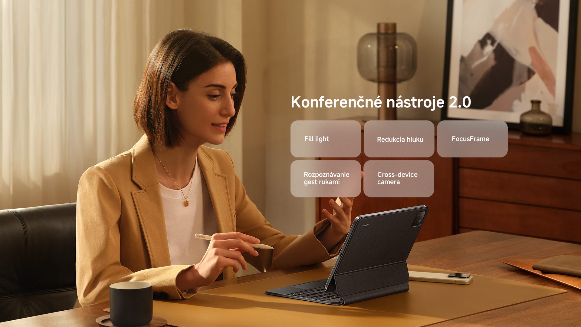 Xiaomi Pad 7 Pro prináša novú generáciu vylepšených konferenčných nástrojov s množstvom funkcií, ako sú napríklad Fill light, Interpret, Cross-device camera a ďalšie, ktoré vám pomôžu zlepšiť priebeh pracovných stretnutí a prácu v kancelárii