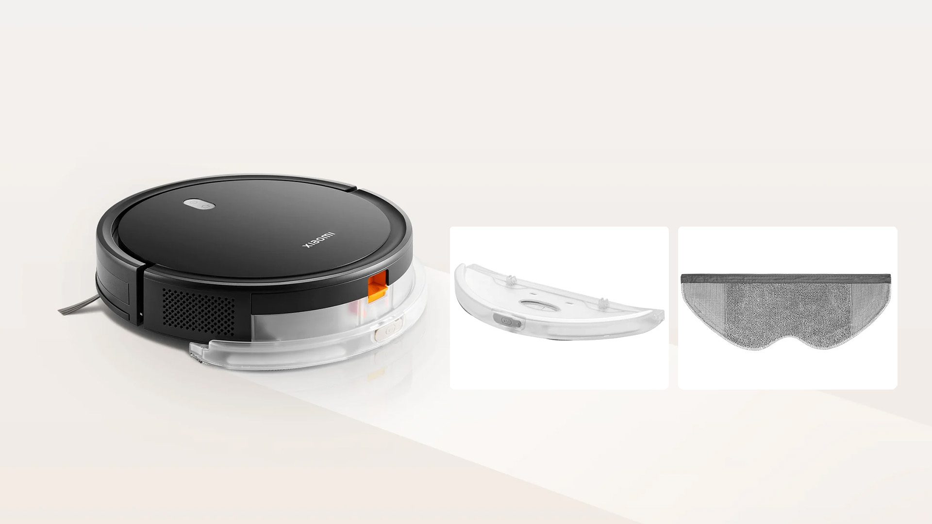 Xiaomi Robot Vacuum E5×1 / Prachová priehradka × 1 / Nádržka na vodu × 1 / Bočná kefa ×2 / Podložka na mop×1 / Napájací adaptér ×1 / Nabíjací dok ×1 / Čistiaca kefka ×1 / Používateľská príručka ×1