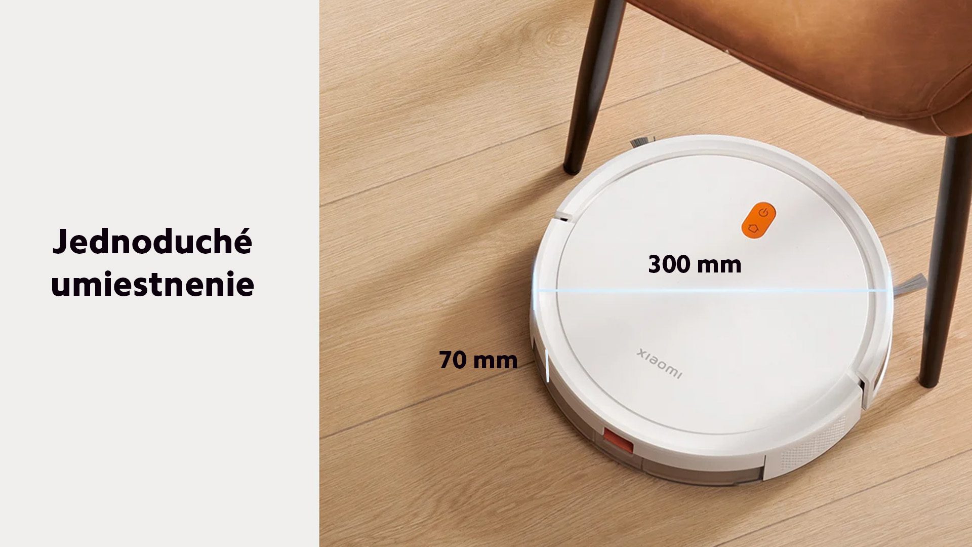 Vďaka svojej konštrukcii a kompaktným rozmerom s priemerom 300mm a výškou len 70 mm, je vhodný do malých a stiesnených priestorov aj na vysávanie pod nábytkom.