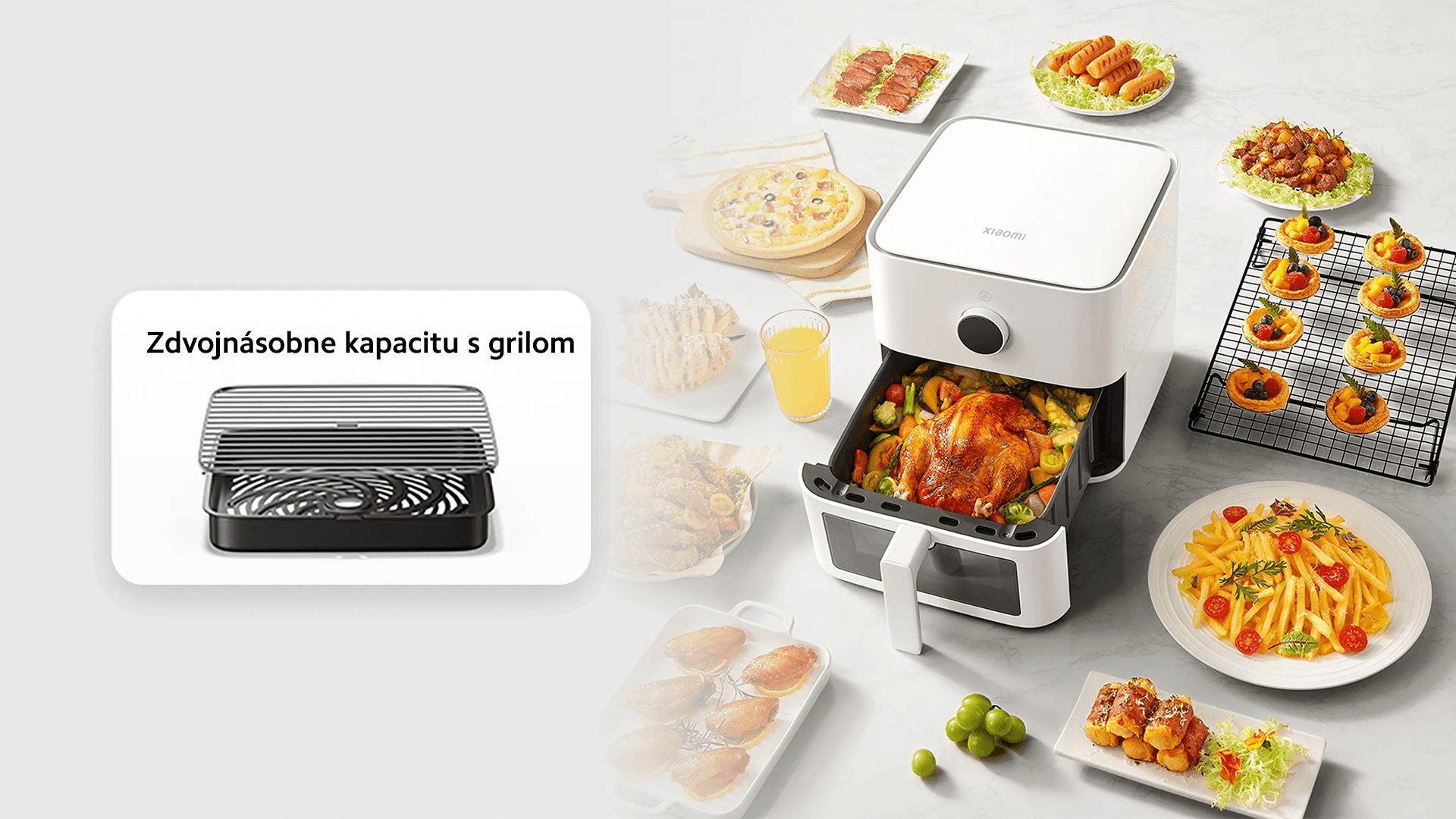 Vďaka väčšiemu objemu si teraz pripravíte aj celé kurča a jedlo pre celú rodinu. V kombinácii s grilovacím roštom, dokáže fritovací kôš obsiahnuť potraviny v dvoch úrovniach súčasne, čim prakticky zdvojnásobí svoju kapacitu.