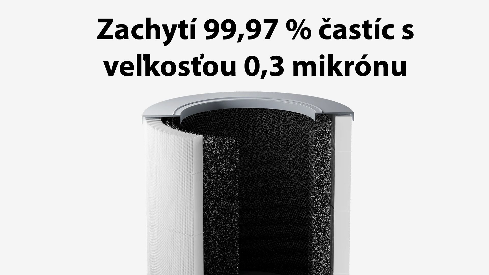 Zachytí 99,97 % častíc s veľkosťou 0,3 mikrónu