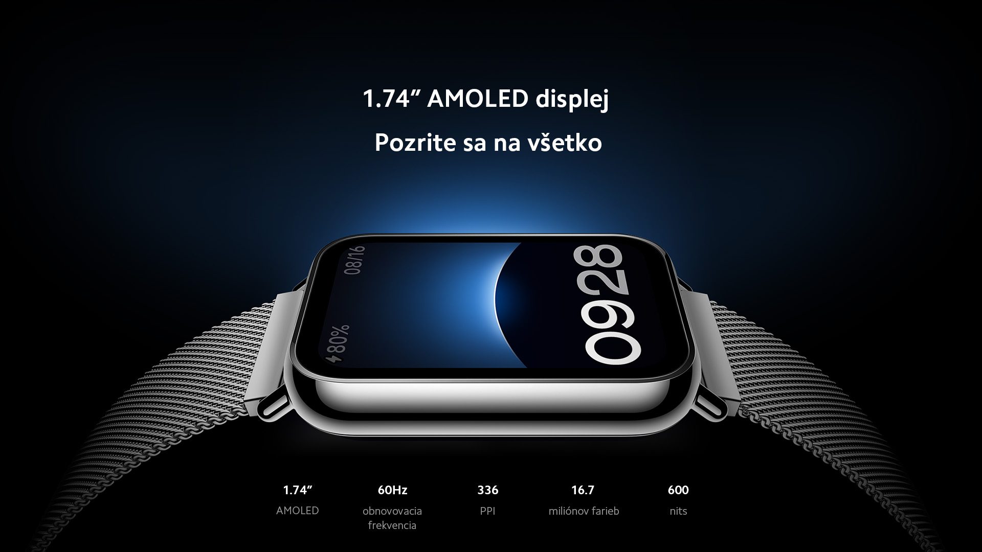 Veľkosť a typ displeja: 1.74″ AMOLED displej