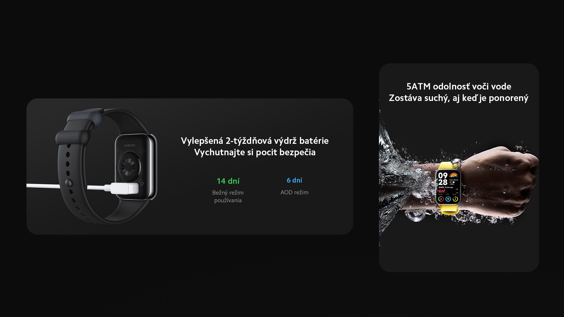 Vychutnajte si novo nadobudnutý pocit istoty s vylepšenou výdržou batérie, ktorá vám teraz poskytne až 14 dní bežného používanie a 6 dní v režime AOD (always on display), či vodeodolnosťou do 5ATM.