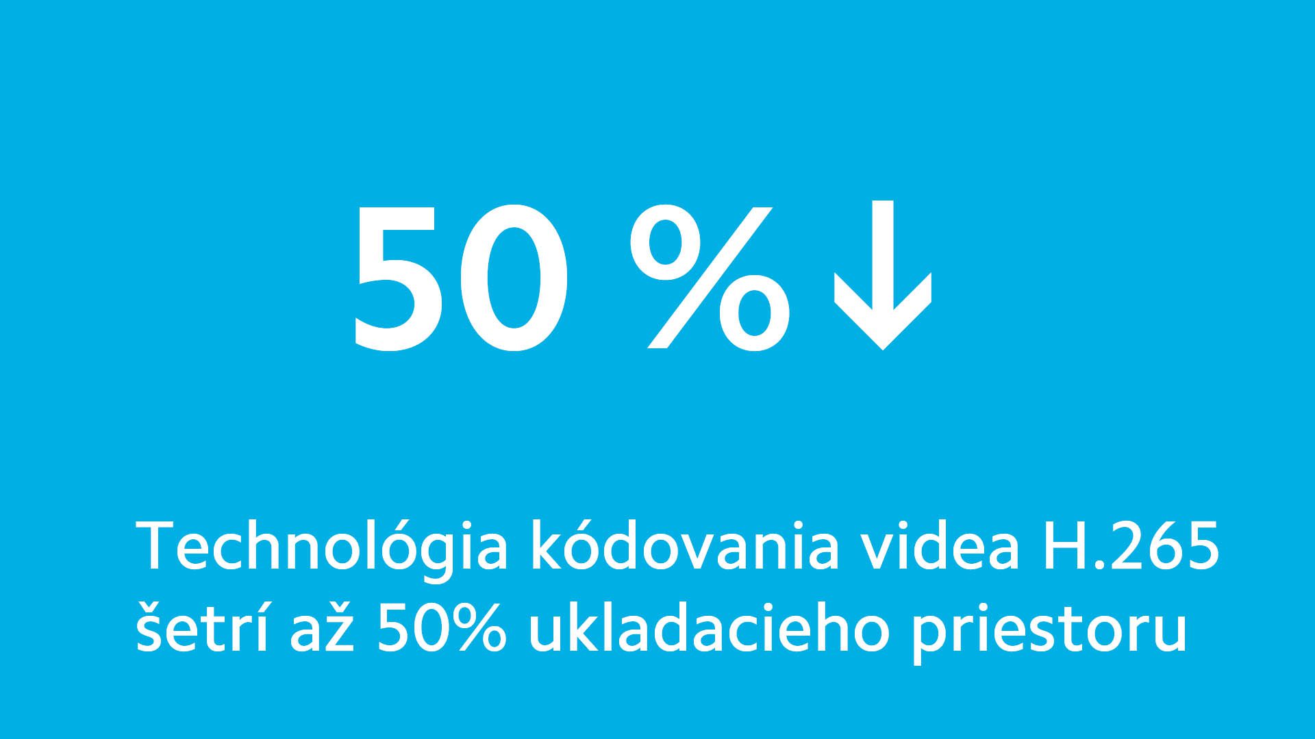 Nová generácia technológie kódovania videa H.265 umožňuje plynulejšie sledovanie a poskytuje jasný a detailný obraz. Najväčšia výhoda H.265 kódovania však spočíva v šetrení ukladacieho priestoru.  V porovnaní s H.264 ušetríte až 50% vášho ukladacieho priestoru.